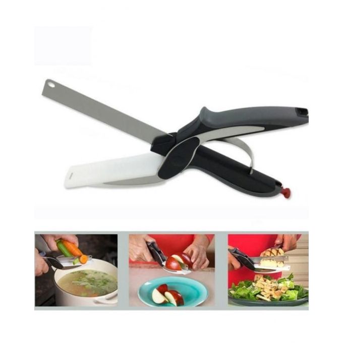 Clever Cutter® is the revolutionary 2-in-1 knife and cutting board that chops and slices your favorite foods in seconds! The secret is the 2-in-1 clever design with ergonomic power pressure handle, to effortlessly cut through food fast! Clever Cutter’s premium blade and extra wide mouth makes cutting fruits, veggies, meats and more fast, easy and mess-free.