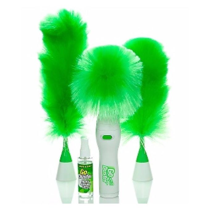 Go Duster is a revolutionary battery operated duster that allows one to clean and wipe away even those elusive dust tucked inside shelves, plants, blinds, electronics and on well-loved collectibles.