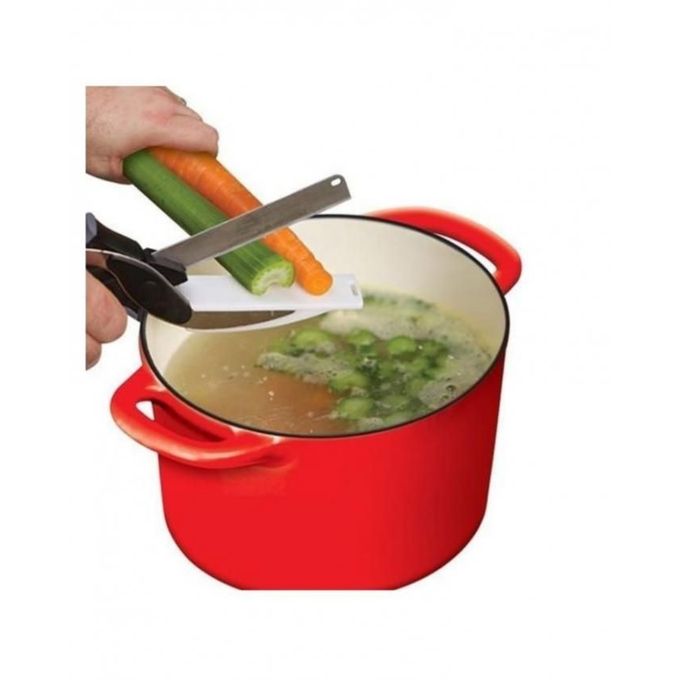 Clever Cutter® is the revolutionary 2-in-1 knife and cutting board that chops and slices your favorite foods in seconds! The secret is the 2-in-1 clever design with ergonomic power pressure handle, to effortlessly cut through food fast! Clever Cutter’s premium blade and extra wide mouth makes cutting fruits, veggies, meats and more fast, easy and mess-free.