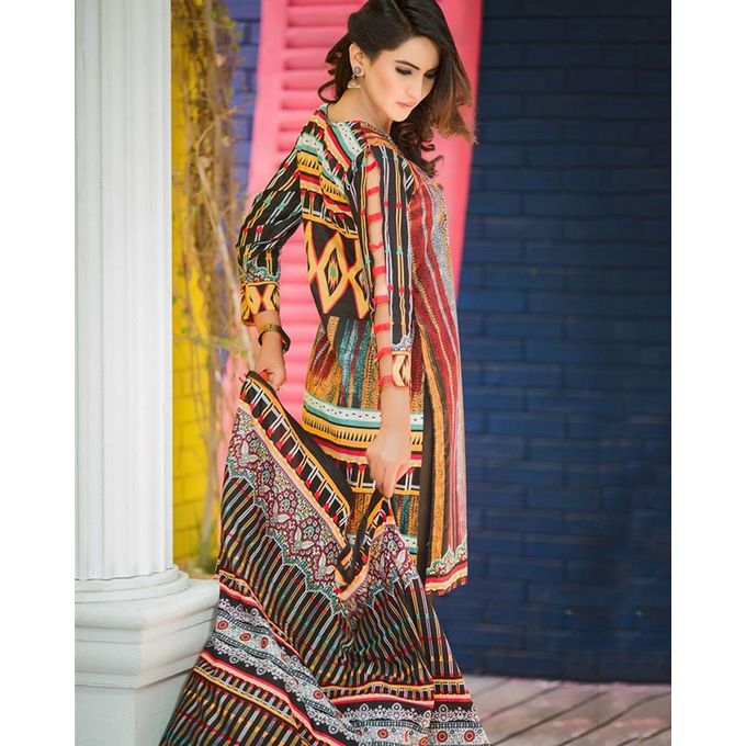 Batik Lawn Un-stitched 3 Piece Printed Lawn Suit - Multicolour