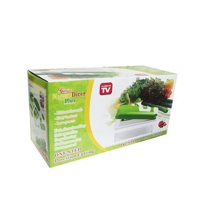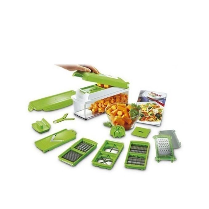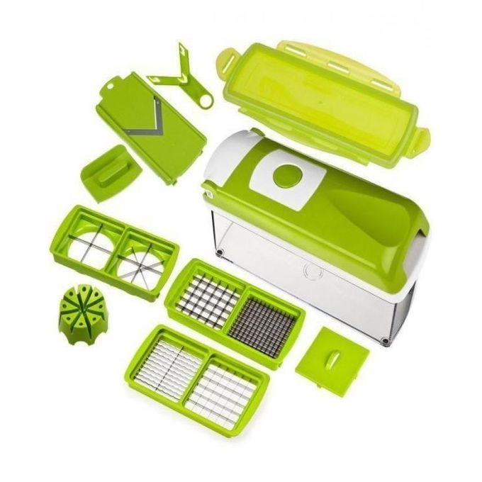 Nicer Dicer is a must have tool for your kitchen. It helps you slice, dice, cut, julienne, cube, wedge, quarter, grate and so much more! The blades are made of ultra-sharp stainless steel, Just press down the lid and they will easily cut through virtually any food. Each blade gives you a choice of different cutting sizes. There's even a grater and a mandolin slicer, perfect for rapidly slicing cucumbers, carrots and potatoes. When you are done you can serve, or lock on the stay fresh lid and save for later. Food preparation has never been so simple!