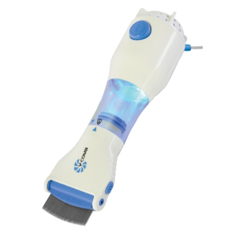 The V-Comb™ use the comb and suction power to gently lift lice and eggs. The teeth are rounded to smoothly run across the head. The comb head has been designed to adjust to either a rake or comb position for maximum comfort depending on the length of the hair. The design is smooth and rounded so that there is no sharp edges or components.